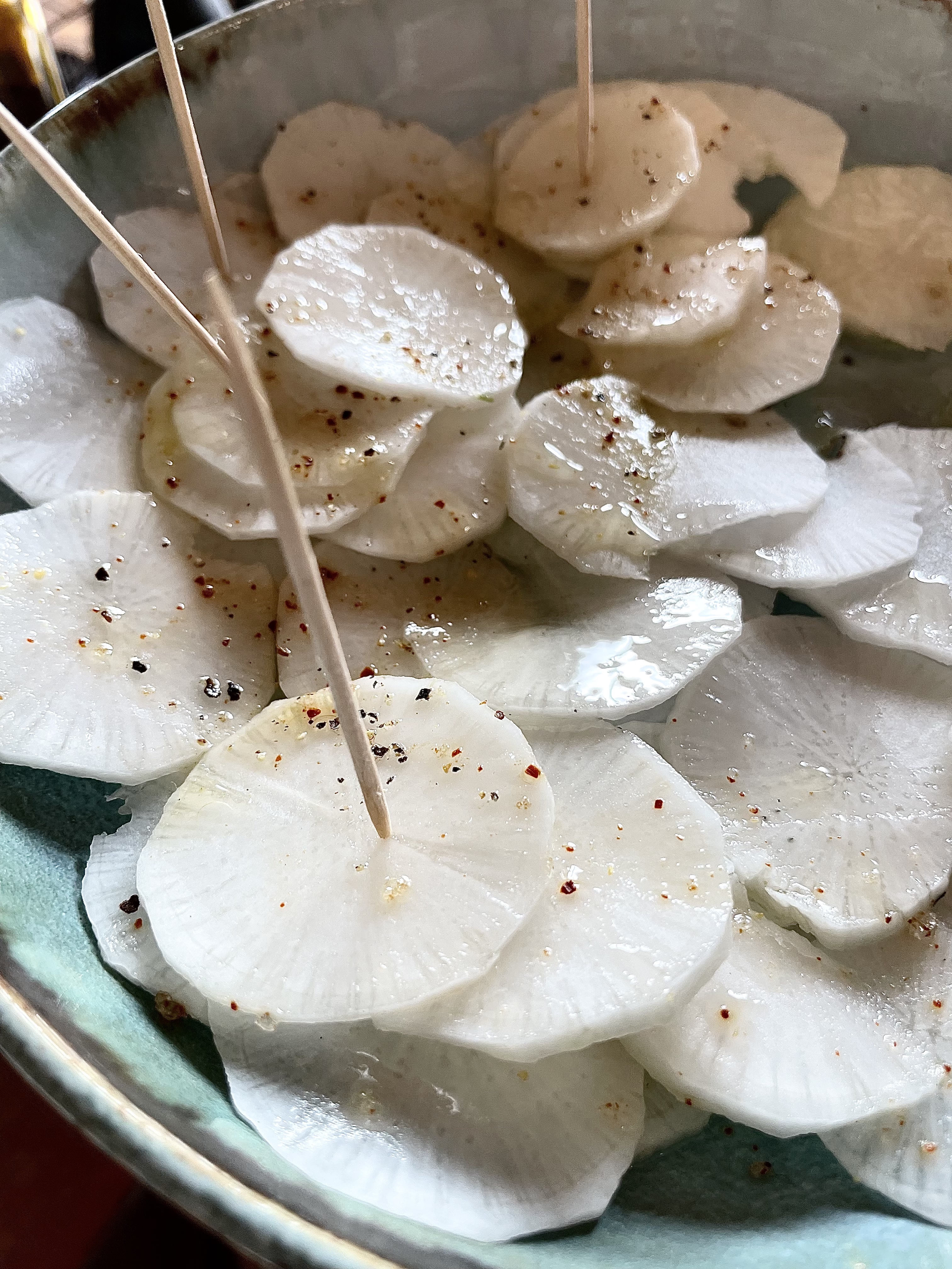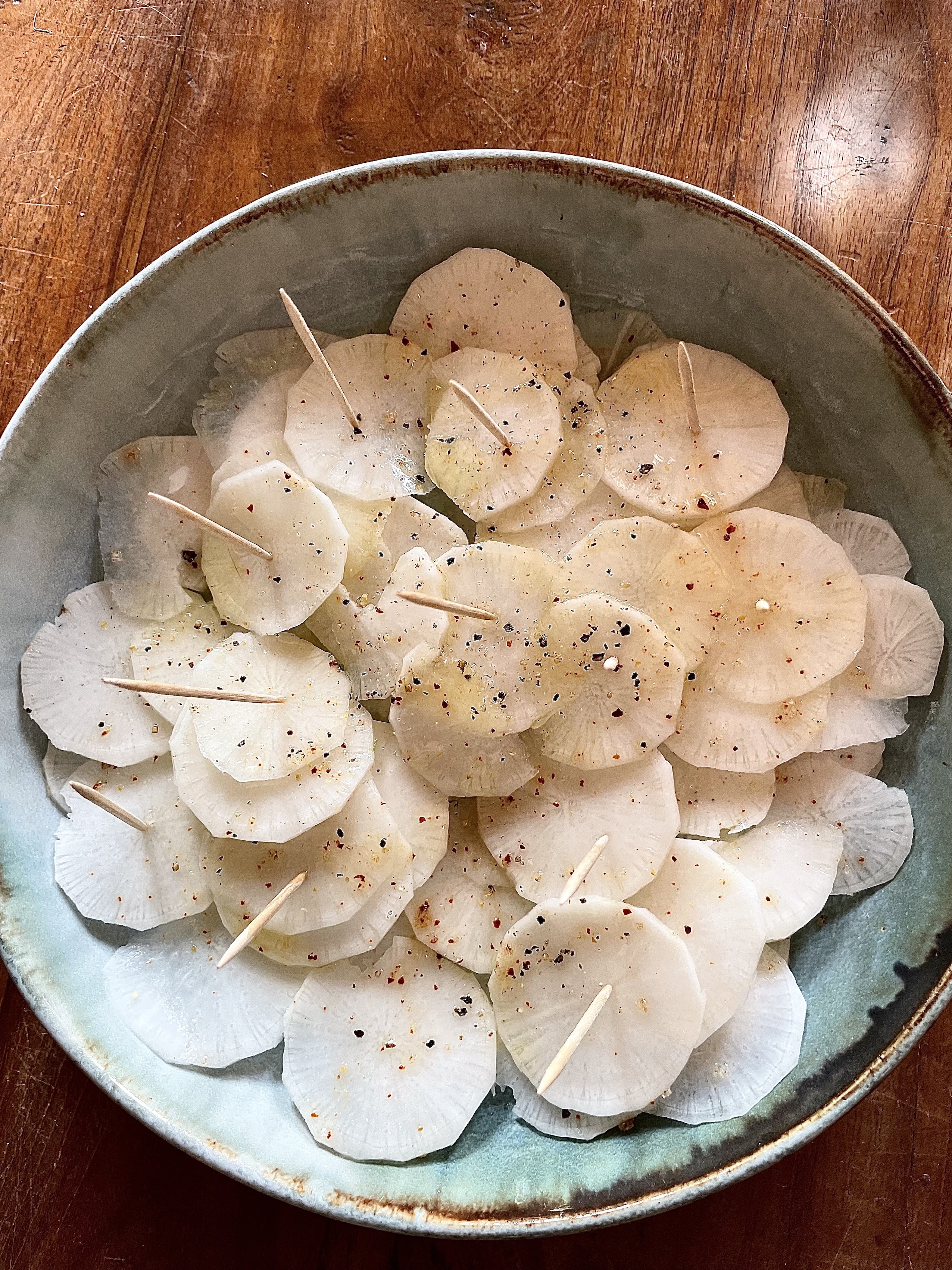 4. Pour finir, piquer quelques lamelles avec des cure-dent.